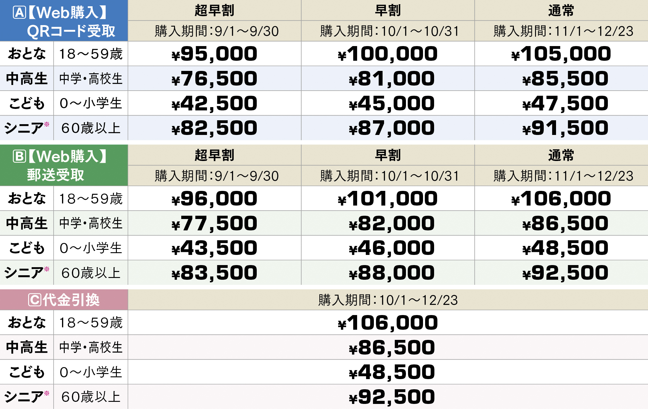 ※超早割・早割料金の販売はA・BのWeb購入のみになります。
